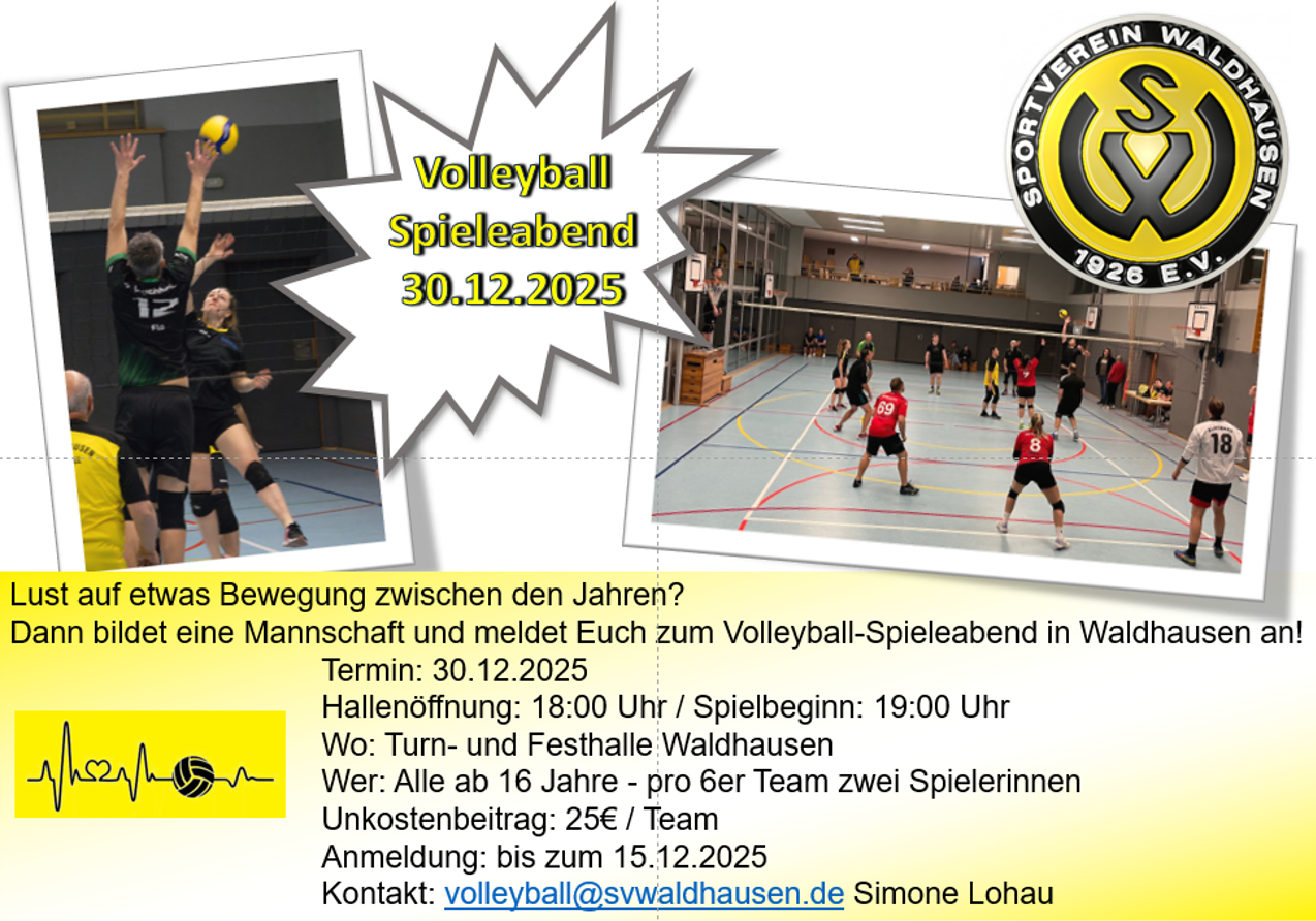 Beitrags-Autor:Benny Beitrags-Kategorie:News Beitrag veröffentlicht:12. November 2025 Lesedauer:0 Min. Lesezeit EINLADUNG: Volleyball Spieleabend Weitere Artikel ansehen Vorheriger BeitragNeue Stadionzeitung 2025/2026 Nächster BeitragFrauen Fitness jeden Mittwoch